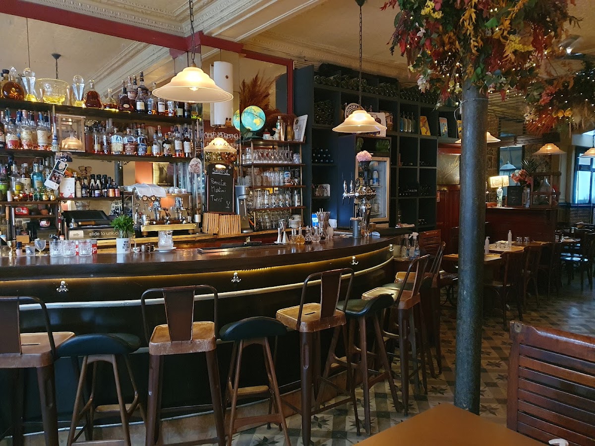 Old-world locale with patterned tiles, preparing cocktails & comfort food like meatballs & burgers.